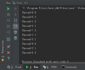 publicclassYou{ privatestatic You you = null; privateint count = 0; publicsynchronizedintgetCount(){return ++count;} privateYou(){} publicstatic You getYou(){ if (you == null) you = new You(); return you; } } publicstaticvoidmain(String[] args){ for (int i = 0;i < 10;i++) new Thread(){ @Override publicvoidrun(){ You you = You.getYou(); System.out.println(getName()+" "+you.getCount()); } }.start(); }